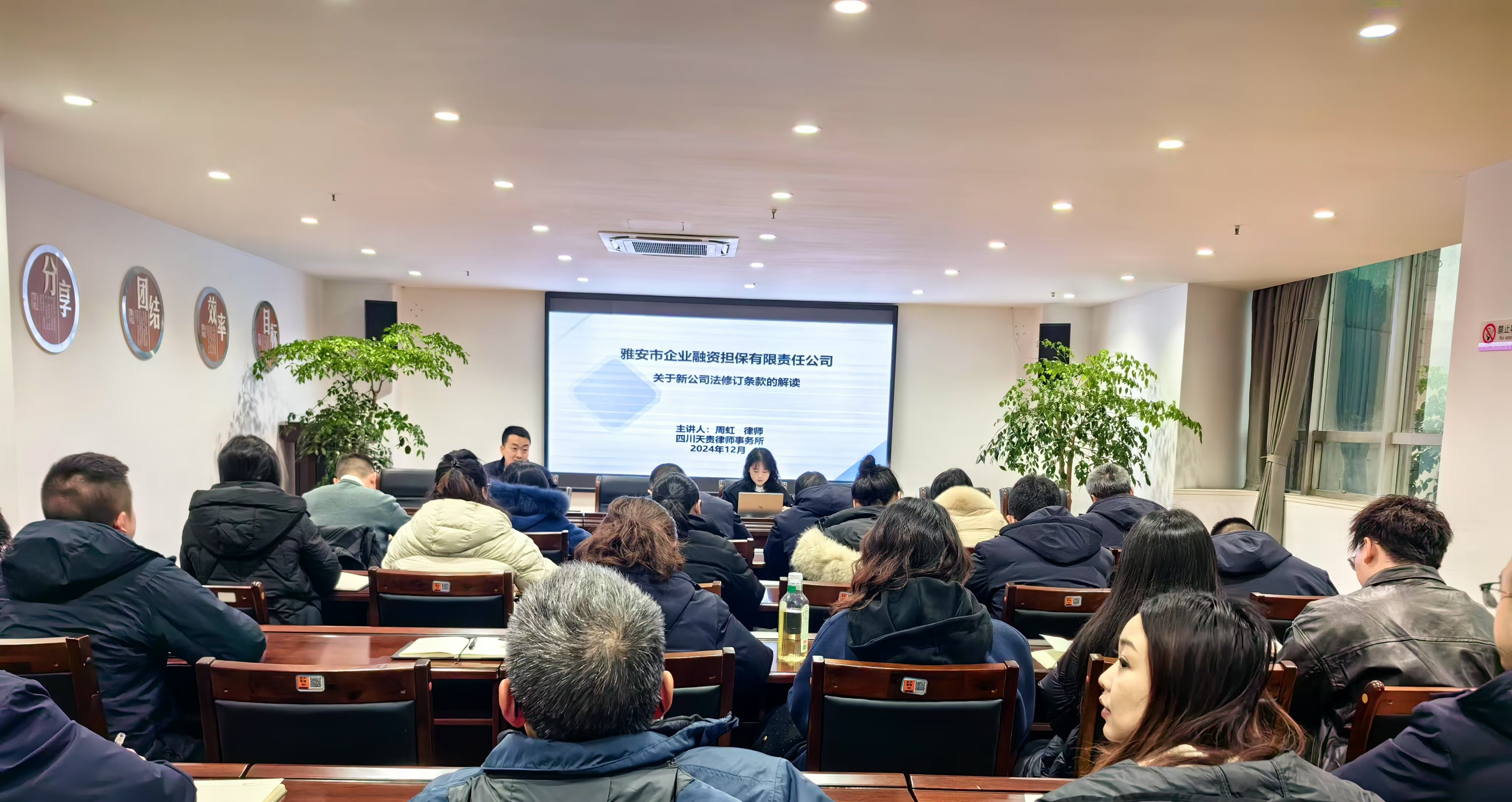 新修訂的《中華人民共和國(guó)公司法》已于2024年7月1日正式施行。為做好新舊法條的銜接工作,幫助公司精準(zhǔn)把握新公司法的核心要義,提高公司在復(fù)雜市場(chǎng)環(huán)境中防范和化解法律風(fēng)險(xiǎn)能力,2024年12月13日上午,市擔(dān)保公司特邀請(qǐng)具備豐富法律實(shí)踐經(jīng)驗(yàn)的周虹律師,組織開(kāi)展了新《公司法》專(zhuān)題學(xué)習(xí)培訓(xùn)講座。